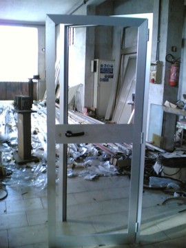 in alluminio, con vetri (trasparenti, sabbiati, colorati, etc.)